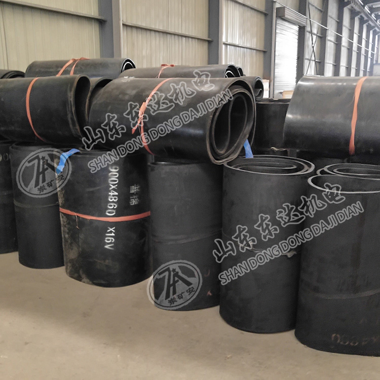 环形胶带采用一次成型制造工艺,其特点是带芯没有接头,没有因接头处早期损坏二影响使用寿命,胶带表面平整,张力均匀,因此胶带运行平稳,使用伸长率小。环形胶带的强度及抗冲抗撕裂能力大大提高,避免胶带断裂。内衬胶带采用防跑偏结构,在环形带中间加铸一道梯形筋,具有防跑偏的强效功能,大大克服了以往皮带跑偏的难题。
